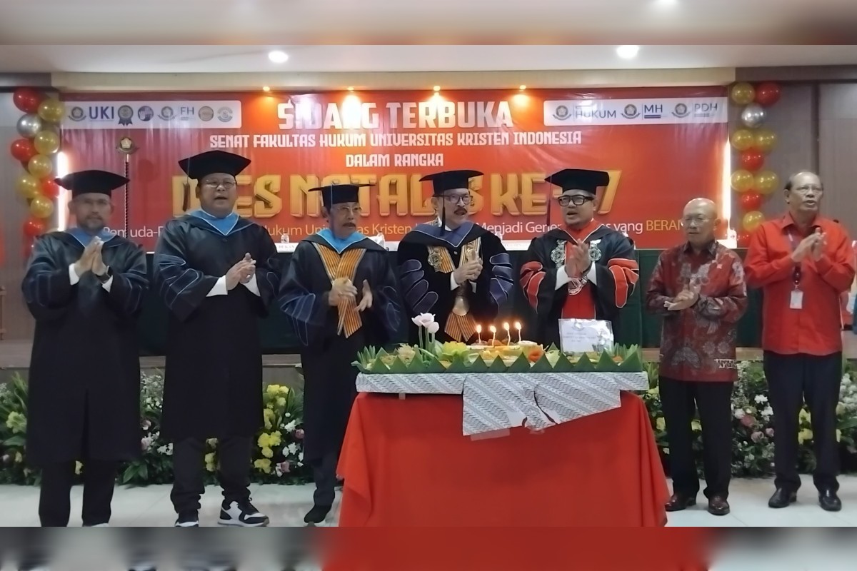 Dekan Fakultas Hukum Universitas Kristen Indonesia (FH UKI) Dr. Hendri Jayadi Pandiangan memimpin peringatan Dies Natalis ke-67 di Gedung AB UKI Jakarta, meneguhkan komitmen melahirkan generasi “BERANI” Bermutu, Mandiri, dan Inovatif.