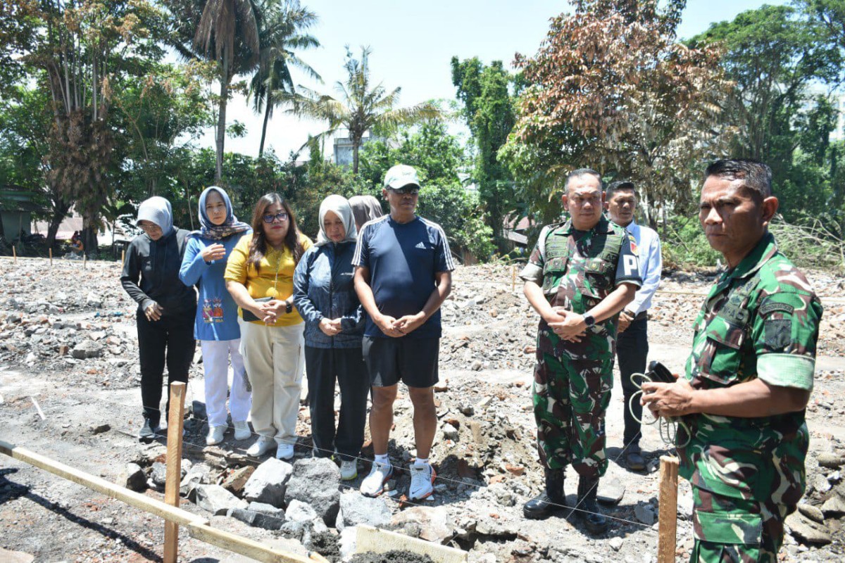 Pangdam XIII/Merdeka Mayjen TNI Suhardi bersama Ketua Persit KCK Ny. Evi Suhardi meninjau lokasi kebakaran dan melakukan peletakan batu pertama pembangunan kembali Asrama Pomdam XIII/Merdeka di Manado.