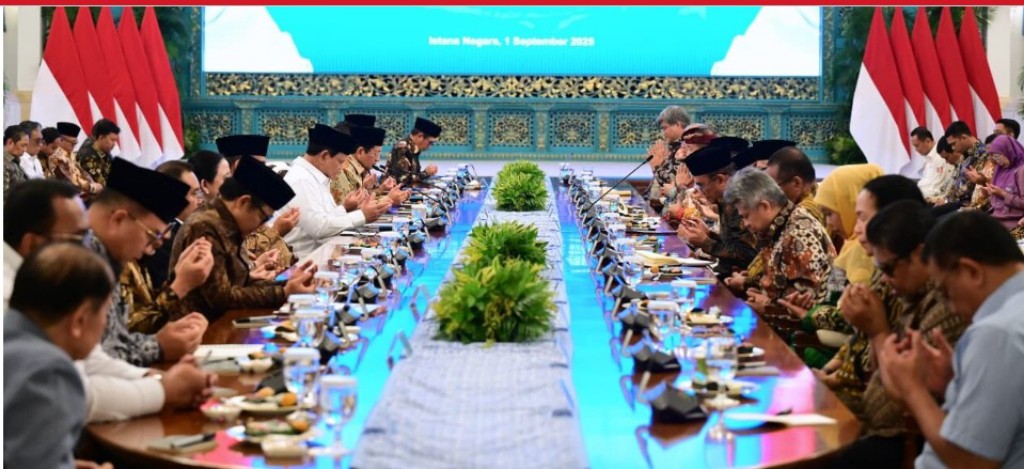 EKSPOSTIMES.COM- Presiden RI Prabowo Subianto menerima tokoh lintas agama, pimpinan partai politik, serikat buruh, serta organisasi pemuda lintas iman dalam pertemuan terbuka di Istana Negara, Senin (1/9/2025). Pertemuan berlangsung hangat dengan diskusi seputar aspirasi rakyat, mulai dari kebijakan perpajakan, isu korupsi, hingga komitmen pemerintah mempercepat RUU Perampasan Aset.