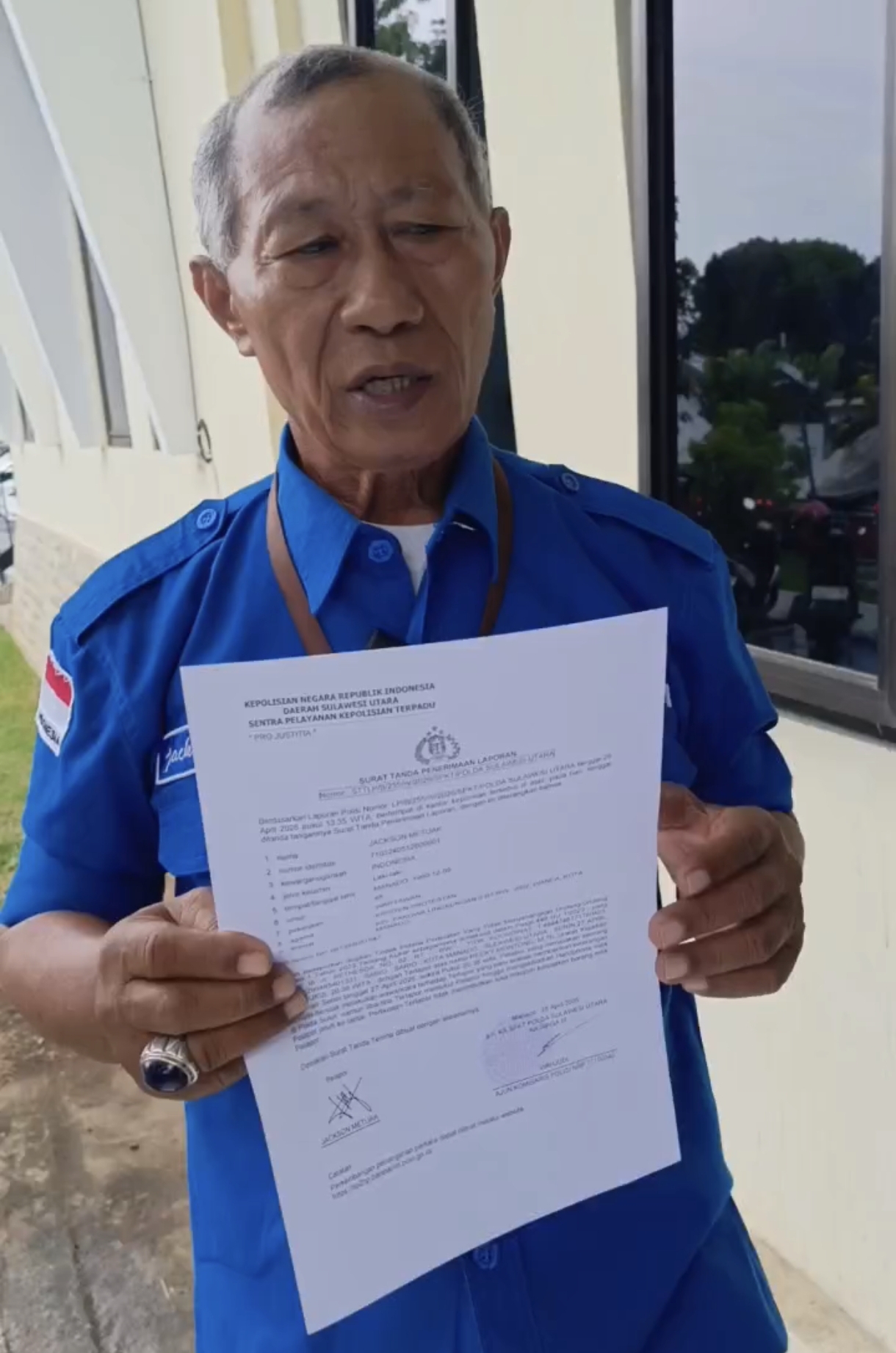 Laporan itu diajukan jurnalis senior Jackson Metuak (65), ke Sentra Pelayanan Kepolisian Terpadu (SPKT) Polda Sulut pada Selasa (28/4/2026) pukul 13.35 WITA. Aduan tersebut tercatat dengan nomor LP/B/255/IV/2026/SPKT/POLDA SULAWESI UTARA.