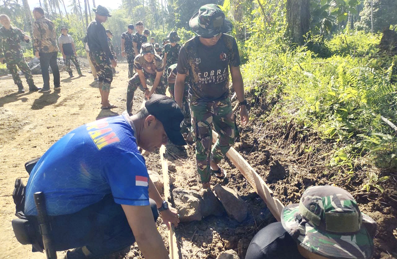 EKSPOSTIMES.COM- Program TNI Manunggal Membangun Desa (TMMD) ke-125 Kodim 1309/Manado di Kelurahan Bengkol, Kecamatan Mapanget, Kota Manado mulai menunjukkan progres yang signifikan, salah satu sasaran fisik yaitu perintisan jalan sepanjang 1200 meter, Kamis (24/7/2025).